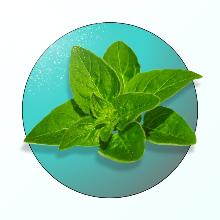 Coconut oil (fractionated), peppermint oil, spearmint oil, clove oil, tea tree oil, vitamin E, stevia, oregano oil, fennel oil, and cardamom oil.